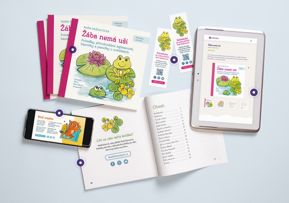 Takhle krásně se Žába vyjímá na stránkách nakladatelství Knihodílna, kde se knížka dočkala skvělého zpracování. Tam a nově i v knihkupectví Kosmas si ji můžete koupit. Nebo přímo tady na mém webu. Písničky z Žáby si můžete poslechnout na YouTube na mém kanále @NadaPazoutova-spisovatelka